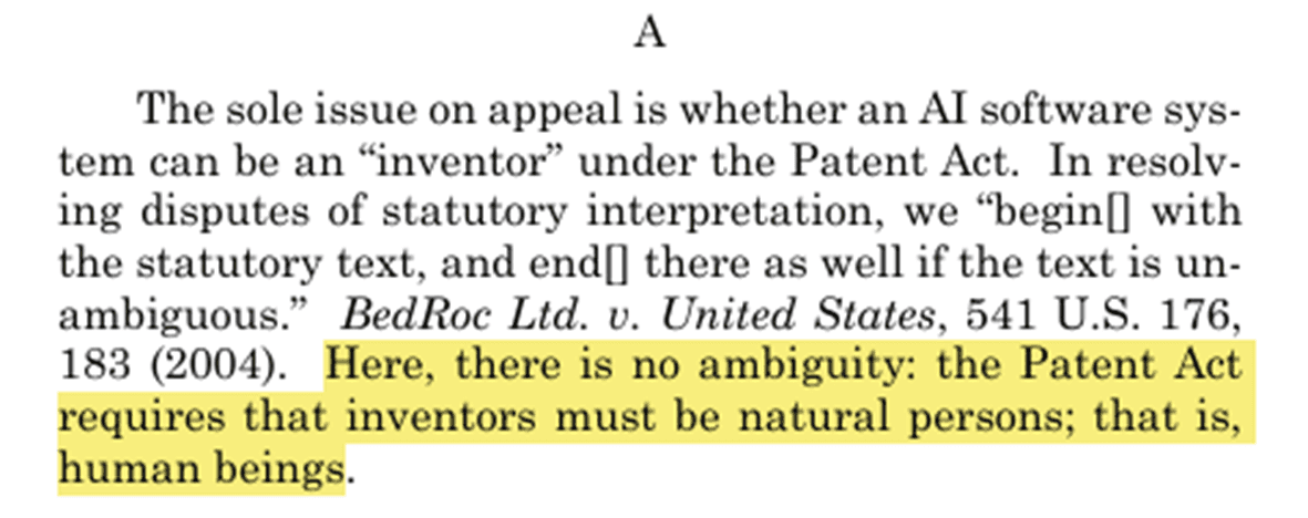 미국 연방순회항소법원(Fed. Cir.), Thaler v. Vidal, No. 2021-2347, 2022. 8. 5. (Opinion).