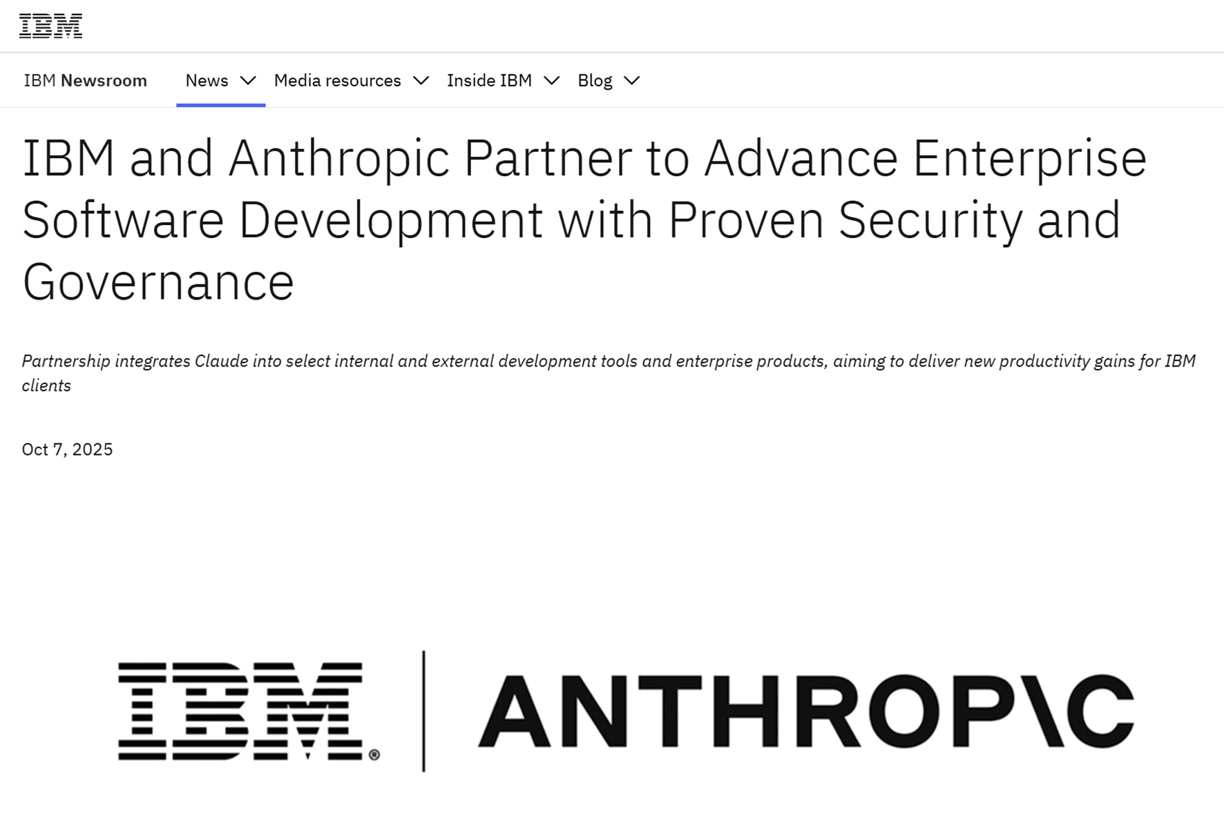 https://newsroom.ibm.com/2025-10-07-2025-ibm-and-anthropic-partner-to-advance-enterprise-software-de